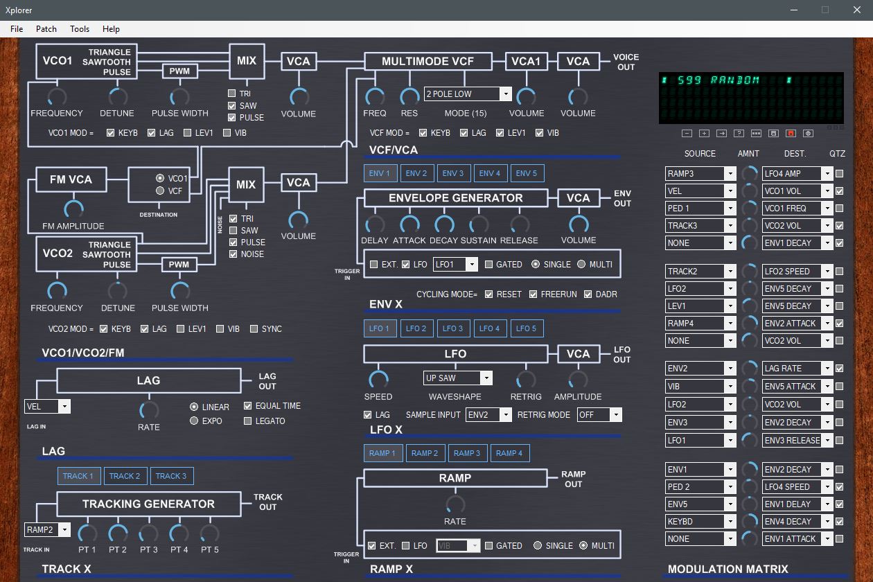 Xplorer is not just another generic synthesizer editor with ranges of slider controls that are all the same and don’t really tell you what you are doing. Xplorer was developed by an Xpander owner for use by Xpander and Matrix-12 owners. With Xplorer you quickly get an overview of all parameters of a single patch, including an overview of the Modulation Matrix.